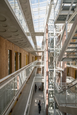 Circulariteit is vanzelfsprekend ingezet als duurzaam en kostenbesparend principe, maar geeft ook betekenis aan het gebouw door de geschiedenis van 100 jaar kaas maken voelbaar te houden.