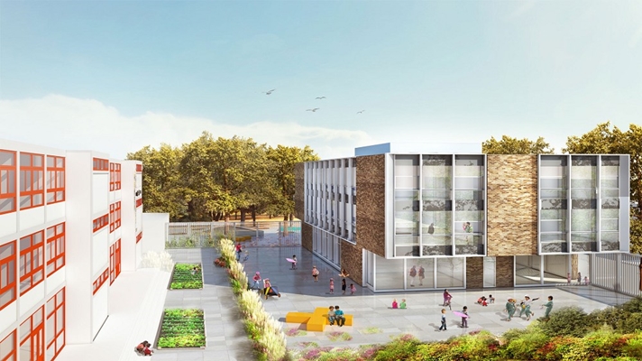 De Kraemerschool in Osdorp krijgt een nieuw schoolgebouw om een gezonde en kansrijke leeromgeving te waarborgen. Paul de Ruiter Architects ontwierp een nieuw duurzaam schoolgebouw met slimme energievoorzieningen en extra veel speelruimte. De nieuwe basisschool verhoogt als Frisse School (Klasse B) het welzijn en het prestatieniveau van de docenten en leerlingen.