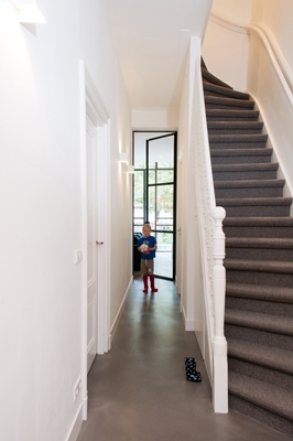 Lab-S heeft voor deze grootschalige verbouwing en renovatie in de Zeeheldenbuurt in Utrecht een eigentijds ontwerp gemaakt dat past bij de karakteristieken van de oude woning. Alle verdiepingen zijn opnieuw ingedeeld om de woning geschikt te maken voor een jong gezin en de bestaande uitbouw aan de achterzijde is vervangen door een nieuwe uitbouw. De indeling van de nieuwe achtergevel is geënt op die van oude achtergevel, met zijn grote hoeveelheid ramen. Lab-S heeft ervoor gekozen om de stalen draagstructuur van de nieuwe uitbouw in het zicht te houden en de kozijnen van hetzelfde materiaal te maken. Dit resulteert in een stoere uitbouw die tegelijkertijd rank oogt en licht tot diep in het huis laat doordringen.