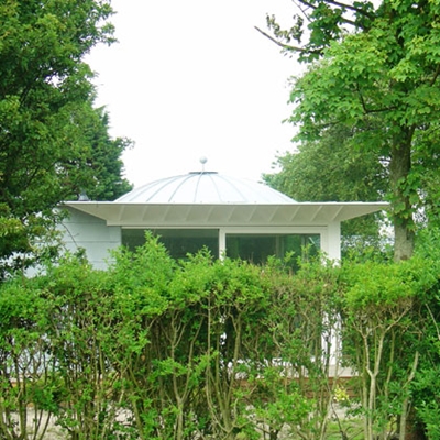 Aan Queeste architecten is op 23 februari 2004 door de familie van Leeuwen opdracht gegeven voor het ontwerpen van een vakantiewoning in het park Bos, Zee en Duin in Noordwijk. Na overleg met de familie is gezocht naar een vorm waarbij invulling gegeven wordt aan zowel esthetische, functionele als pragmatische eisen en wensen. Het resultaat is een vriendelijk doch gedistingeerd gebouw met een bol hoedje. De plattegrond is vierkant en efficient in opbouw. De begane grond waar het wonen zich bevindt richt zich daarbij op de zon en de meest aangename ruimte van de tuin. Onder de gehele vakantiewoning bevindt zich een kelder. Hier zijn de benodigde slaapkamers en bergingsruimten ondergebracht. Daglicht wordt daarbij verzorgd door koekoeken in het maaiveld. De uitstraling van de woning is eenduidig uitgewerkt en is voornamelijk bepaald door de eenvoud van details en het zink dat gekozen is als materiaal van de gevel.