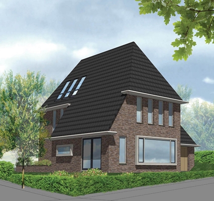 Ter plaatse van de entree en de tuin is een voorname tweelaagse gevel zichtbaar, terwijl de goot zich verlaagd ter plaatse van de garage en de hoek van de kavel. Op de begane grond bevindt zich een ruime woonkeuken met werkkast. Hierin kan de trap naar de optionele kelder geplaatst worden. Aan de achterzijde is een zeer royale woonkamer gericht op de tuin. De garage biedt plek aan twee auto’s met daarboven een extra tv- speelkamer bereikbaar vanaf de slaapverdieping.