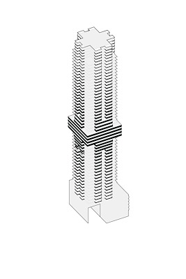 De architectuur van de woontoren is geïnspireerd op het rijke palet van de wederopbouwarchitectuur van deze wijk en plaatst het gebouw op een vanzelfsprekende manier in het Baankwartier. De toren relateert door haar silhouet en haar geleding op twee schaalniveaus aan de stad: de ‘Rotterdamse laag’ en de skyline. Het volume heeft een drievoudige kroon: boven, midden en onder.