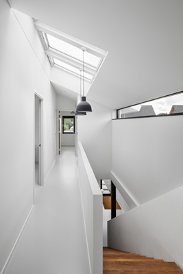 Voor het ontwerp van de indeling is de keuken centraal in de woning geplaatst en de woonkamer is hier rondom gelegd. Ter plaatse van de zithoek heeft de woonkamer extra veel hoogte onder de schuine kap. Daarnaast zijn er diverse leuke doorzichten in de woning gemaakt.