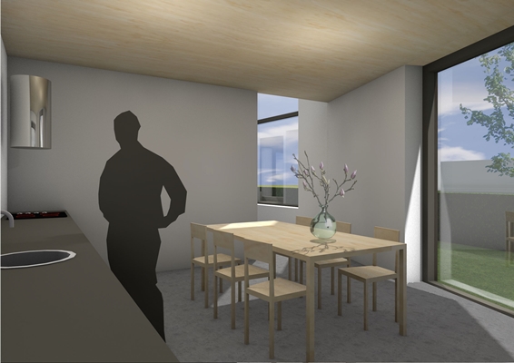 Oriëntatie op de zon, duurzaamheid, het uitzicht over de groene ruimtes rondom de woning zijn de leidende factoren in het ontwerp. De hoekkavel in het plan de Vijverberg te Doetinchem gaf de aanleiding voor bewerking van het hoofdvolume. De vorm wordt hierdoor markant, de architectuur blijft terughoudend.