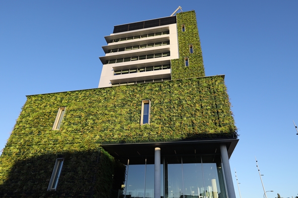 Prominent onderdeel van stadskantoor Venlo zijn de groene gevels. Ze hebben niet alleen een esthetische functie, maar voldoen ook aan de eisen van Cradle to Cradle en hebben een zuiverende en fijnstofreducerende werking. Met 2.000 m2 is het de grootste groene gevel ter wereld, met meer dan 100 verschillende planten die bijdragen aan de biodiversiteit en een schonere omgeving. De gevel haalt 30% van de zwavel- en stikstofoxides uit de buitenlucht en compenseert de fijnstofuitstoot van 3.000 m2 autoweg. Ook zuivert de gevel de lucht uit het gebouw. Via het gevelsysteem wordt de vervuilde lucht naar buiten geblazen, waarna de beplanting in de gevel de lucht reinigt.