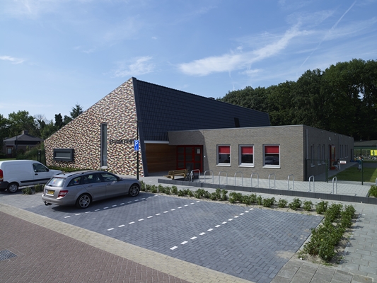 Het was voor Van den Bosch vanaf het begin al duidelijk dat deze uitstraling met baksteen bereikt moest worden: “In Brabantse dorpen wordt veel met baksteen gebouwd. Om het gebouw te verbinden met de omgeving is daarom besloten om de gevel in baksteen uit te voeren.” Om een mooie kleurmelange te creëren is Van den Bosch bij Wienerberger in Zaltbommel langs geweest voor advies. “In de Wienerberger Expo is een complete collectie van bakstenen in verschillende kleuren en vormen te vinden”, vertelt Van den Bosch. “We hebben allerlei kleuren bij elkaar gelegd, van fel geglazuurde strengpersstenen tot handvorm