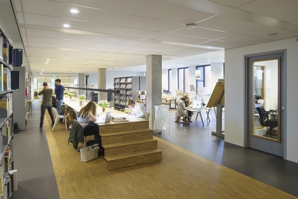 In interactieve workshops met docenten en studenten, ontstond een interieur dat het ambachtelijk en creatieve karakter van de school versterkt. In materialen, detaillering en afwerkingen is volop geëxperimenteerd met technieken in hout, metaal, stof , etc. De wanden zijn voorzien van spiegels, bulletinboards, kunstwerken, vitrines en schrijfwanden. Zo worden door het gebouw heen producten van de designers, meubelmakers en vaklieden van de toekomst gedeeld. Een breed palet aan verschillende onderwijsruimtes; vaklokalen, instructieruimtes, labs, studio’s en werkplaatsen maar ook paviljoens, winkels, beurstands en etalages presenteren het ambacht. Door toepassing van veel glas in de gevel etaleert de school zich ook naar de buitenwereld.