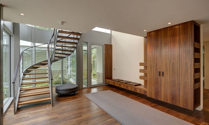 De nauwgezette coördinatie, planning en detaillering van de architectuur, de tuin, het interieur, het  verlichtingsconcept, individueel  ontworpen meubels en hoogwaardige materialen in een directe en harmonieuze samenwerking met de opdrachtgever heeft geleid tot een unieke, individuele, op maat gemaakte oplossing. Een ingetogen, rustig kleurenpalet biedt ruimte voor kleuraccenten door middel van kunst.