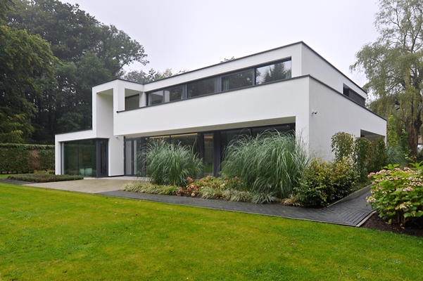 Op de plaats waar nu het moderne landhuis staat, stond drie jaar geleden nog een bungalow. De indeling stamde uit de jaren ’70, de woning was erg laag en de gevel aan de achterzijde was gesloten, omdat daar voorheen een tennisbaan lag. Daarom werd besloten om een nieuw gebouw neer te zetten. Maas Architecten omarmde met deze woning "le plan libre', ofwel de vrije plattegrond. Ruimtes zijn met elkaar verbonden en lopen moeiteloos in elkaar over, zowel horizontaal als verticaal. Het is één open ruimte met grote raampartijen en veel licht. Dit geeft de bewoners het gevoel in een park te wonen, tussen de monumentale bomen.