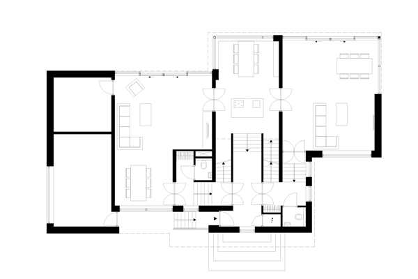 De wens van de opdrachtgever was het realiseren van een woning welke het samengaan van twee gezinnen zou versoepelen. De man en vrouw voor wie de woning is gerealiseerd, hebben beide jonge kinderen uit een eerdere relatie. Wij hebben voor hen een woning ontworpen met gescheiden functies en een aantal gemeenschappelijke ontmoetingsruimten voor beide gezinnen. Elk gezin een eigen hal, woonkamer, badkamer, toilet en slaapvleugel. De centrale hal en ruime eetkeuken zijn opgezet als gezamenlijke vertrekken en vormen hiermee het hart van de villa.