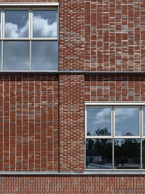 Architect Geurst & Schulze ontwierp de nieuwbouw van dit technasium - 19 lokalen en een auditorium - als uitbreiding van het aanwezige onderwijsgebouw. Het technische aspect van het onderwijs was bepalend bij ontwerp en materiaalgebruik. Zo is de technische opbouw van het gebouw zo veel mogelijk zichtbaar gemaakt. In samenwerking met Steenhandel Gelsing is gezocht naar een gevelsteen welke aansluit bij de technische uitstraling van dit gebouw. Dit heeft geresulteerd in het gebruik van een typerende donkerrode wasserstrich steen. Bijzondere details zijn, de lichte voeg, de gemetselde plint in staand metselwerk en de blinde nissen gemetseld in tegelverband.