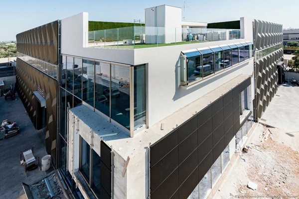 The company Esen Fu in the South of Italy carried out a complete make-over of their office and manufacturing building. In order to show off their skill in installing windows, they added a striking façade, which underlines the precision of their craftsmanship. Different types of windows are integrated into the building’s envelope. The colours are bright white in combination with ALUCOBOND