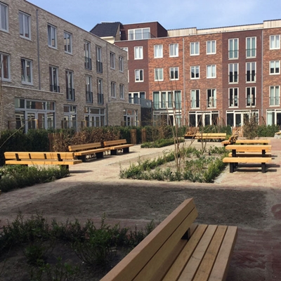 In de Rotterdamse nieuwbouwwijk Hof aan de Hef is de gezamenlijke binnentuin ingericht met FalcoGlory producten. Samen met opdrachtgevers Binder Groenprojecten en De Vroed Infra heeft Falco voor de eindklant een nieuwe serie straatmeubilair ontwikkeld op maat. De klant was op zoek naar geschikt straatmeubilair om te relaxen en wat te drinken in de binnentuin. Begonnen als project op maat, nu ook een standaard product in ons assortiment.