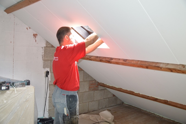 Het thermisch isolerend voorzetelement PG90 Roofing biedt een maximale isolatie van RC 3,70. De Faay isolatieplaten worden tegen het dakbeschot bevestigd en maken de woning een stuk energiezuiniger wat weer resulteert in een lagere energierekening. In dit project is gekozen de PG90 Roofing panelen prefab af te werken met wit vinyl wat de bewoners aanzienlijk minder belast gezien het plafond afgewerkt is bij oplevering.