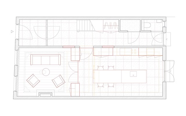 Bij de verbouwing van dit herenhuis besloten we om de keuken op de begane grond opnieuw te definiëren en vorm te geven als een luxe woonkeuken, die in open verbinding staat met zowel de achtertuin, als de stijlkamer aan de voorzijde. Door een paar eenvoudige bouwkundige aanpassingen heeft deze ruimte nu meer oppervlakte en licht gekregen en staat in betere verhouding tot de rest van het huis.
