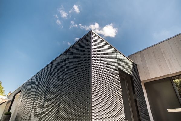 Het materiaalgebruik aan de buitenzijde is sober en verstrekt elk bouwdeel zijn eigen karakter. De schuur is bekleed met brede planken Red Cedar. Ze benadrukken de vorm van de ramen en dakkapellen ten volle. De uitbreiding is ingepakt in donker strekmetaal. Dit accentueert zijn vorm en geeft diepte aan de gevel: eenvoud en klasse. Het woonhuis heeft zijn eigen karakter behouden en wordt in de volgende fase verbouwd.