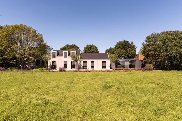 In de verbouwde schuur zijn naast een bed & breakfast ook de hoofdslaapkamer en badkamer te vinden. De dubbele verdiepingshoogte geeft een buitengewoon ruimtelijk gevoel en blijft tegelijkertijd ingetogen door materiaal- en kleurgebruik. Er zijn veel bijzondere elementen in de villa toegepast, zoals een gigantische taatsdeur bij de entree, een enorme schuifpui met weggewerkt kozijn en speciaal voor ons ontwikkelde buitenkozijnen bij de schuur. Bovendien is uitgebreid gebruik gemaakt van domotica.Voor de pui en de kozijnen is maatwerk geleverd door lokale specialisten en ook voor de afwerking van de buitenkant en het interieur is met name lokaal naar oplossingen gezocht.
