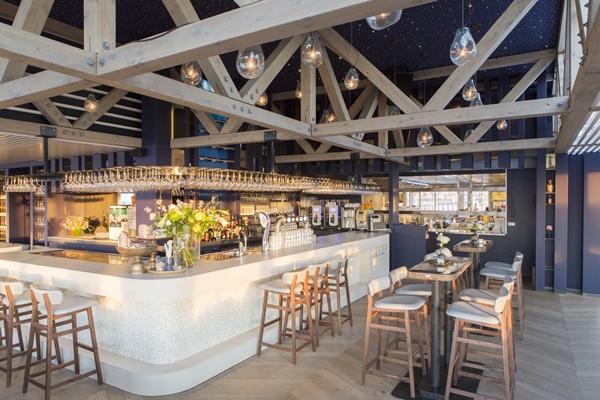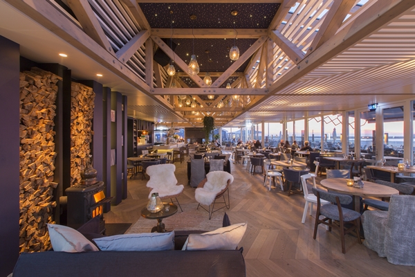 De lichtbron FL 1000 B-1 3.000K van het fabricaat Roblon is uitgerust met een CTC filter waardoor de kleurtempratuur gereduceerd is tot ca. 2.700K. De warme lichtkleur geeft het restaurant een uitnodigende intieme sfeer.