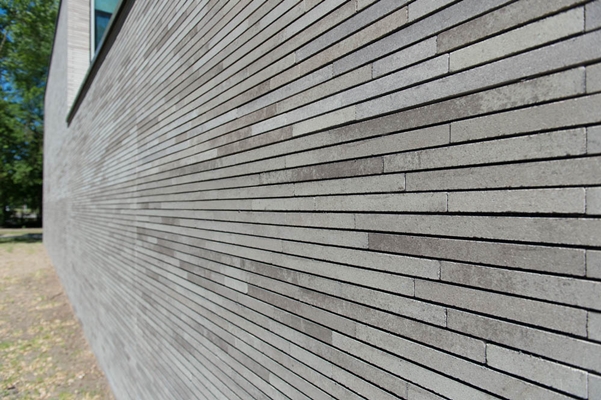Halfweeg: ‘Tegelijkertijd wilden we met dit gebouw een kunstwerk toevoegen dat past in dit beeldenpark. Met strakke lijnen wilden we de buitengevel een moderne en uitgesproken uitstraling geven. Ik zocht naar materiaal waarmee we dat effect konden bereiken. Een oud-collega, waarmee ik ooit samenwerkte bij het bureau van Herman Hertzberger, vond dat betonsteen wel bij dit ontwerp zou kunnen passen. Hij raadde mij GeoStylistix aan.’