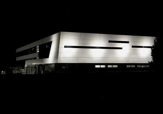 The architects at Gellink+Schwämmlein Architekten designed a three-storey building for Mercedes AMG GmbH comprising a workshop area, meeting rooms and offices, and even an attractive staff restaurant on the top floor. Building 9, a conventional reinforced concrete frame construction with reinforced concrete floors and underground car parking facilities for 63 cars, communicates the company’s corporate design.