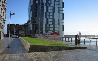 De gebouwen aan het waterfront staan losjes in de openbare ruimte. Zon, wind en regen krijgen vrij spel, het is één groot plein van natuursteen met een grote bank als sculptuur. Alleen de losstaande woongebouwen aan de rand van het water staan met hun voeten aan een parkfragment. Beschutte openbare ruimte aan het Weerwater is een verdieping lager te vinden, in de vorm van de Moerastuin en het Waterplein.
