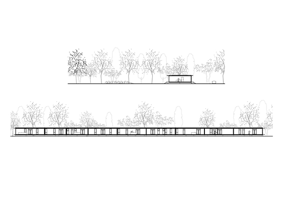 Om maximale vrijheid binnen een efficiënt bouwsysteem te kunnen geven is de gevel als een spel ontworpen. Ieder familie kreeg bij het plan een set van zeven ramen en deuren, die op elke gewenste plek in de gevel geplaatst kunnen worden. De ruimte tussen de kozijnen wordt opgevuld met vaste delen glas zonder kozijn. Hierdoor ontstaat een rustig en toch gevarieerd gevelbeeld van ruim 100 meter lang.