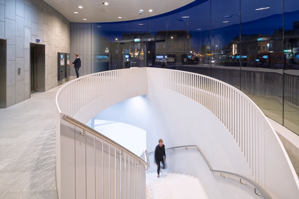 Hoewel parkeren op zichzelf geen doel is, is parkeren in Parkeergarage Lammermarkt een beleving op zich. De typologie van de ronde parkeergarage maakt dat alle verdiepingen ruimtelijk met elkaar zijn verbonden. Hoewel de diepte hiermee wordt benadrukt en zichtbaar wordt, vormt deze ruimtelijkheid de basis voor een sociaal veilige omgeving die prettig en comfortabel aanvoelt. De licht afgewerkte parkeergarage blinkt uit in functionaliteit en comfort. De routing is helder, de parkeervakken zijn breed en de trappen en liften worden gemakkelijk gevonden. Er is geen kruisend verkeer en met het eenrichtingsverkeer is de verkeersveiligheid maximaal.