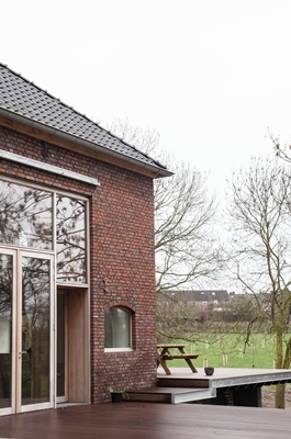 Glazen deuren met houten frame nodigt je uit naar buiten