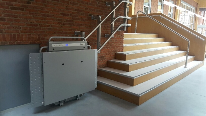 Om het nieuwe studiepaviljoen bij het Alvinus Magister College te Sneek algemeen toegankelijkheid te bieden, is er gekozen voor een platformlift van Triwa Trapliften. De trap verbindt het oude schoolgebouw met de verlaagde aanbouw. Om de eveneens nieuwe trap te ontzien van staanders, is er gekozen voor een speciale wandbevestiging. Daarnaast is de lift voorzien van een opklapbaar RVS zitje.