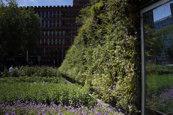 Mostert De Winter is benaderd om onze expertise met betrekking tot circulair en groen bouwen in dit project in te brengen. De entree van het paviljoen is voorzien van het Cradle to Cradle gecertificeerd Modulogreen gevelsysteem en biedt een aantrekkelijk biotoop voor vlinders, bijen en vogels. Uiteraard denkt Mostert De Winter graag een stapje verder. Mostert De Winter hanteert bij dit project namelijk een terugname garantie voor de Modulogreen modules. Bij een eventuele transformatie van het gebouw kan het Modulogreen gevelsysteem eenvoudig worden gedemonteerd, hergebruikt en opnieuw een duurzame verticale tuin vormen.