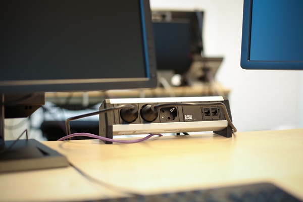 opbouwunits 230V en dubbele data-aansluingen. Deze handige opbouw-unit is overal op een bureau te plaatsen en eenvoudig vast te zetten. De invulling van de units is modulair, zodat een 230V of usb- oplaadpunt naar wens gerealiseerd wordt.