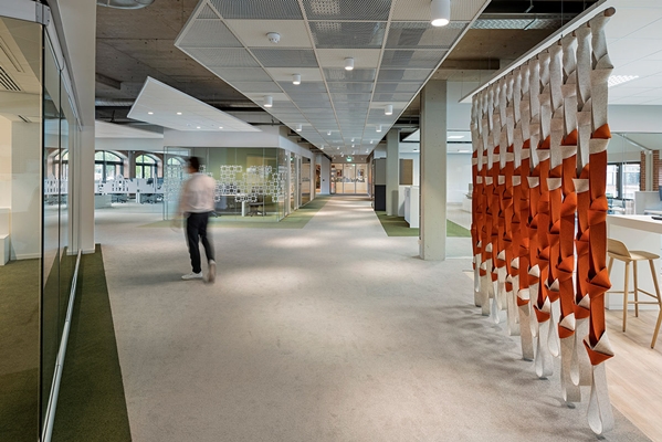 De Hanzestad Harderwijk is prachtig gelegen aan het water en heeft een rijke historie. De stad, indertijd gelegen aan de Zuiderzee, sloot zich aan bij de Duitse Hanze. Met het komen en gaan van handelaren en handelsproducten was er volop bedrijvigheid in de stad. De visserij en lakennijverheid zijn daarbij belangrijke bronnen van inkomsten geweest. Nu, in de 21e eeuw, zijn de sporen van deze tijd nog altijd zichtbaar. Sommige gebouwen van toen staan er nog. De schilderachtige binnenstad van Harderwijk is in 1969 tot beschermd stadsgezicht verklaard en telt een kleine honderd rijksmonumenten. Om ook deze rijke historie zichtbaar te maken in de nieuwe werkomgeving hebben we speciaal voor het stadhuis vilten roomdividers ontworpen geïnspireerd op de vissersknopen en zijn er grafische dessins op glasfolies ontworpen geïnspireerd op de markante rijksmonumenten van Harderwijk..