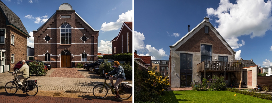 Aan de HooftÂstraat in Alphen aan den Rijn stond een verÂwaarÂloosd kerkje dat al bijna 40 jaar niet meer als kerk gebruikt werd. Door herbestemÂming tot een bijÂzonÂder extended- family huis is het kerkje herÂsteld en bliÂjft het behouden als tastÂbare herinÂnerÂing aan het verleden.Het kerkje is qua grootte van het perceel en gebouw ideaal voor de bijÂzonÂdere woonÂwens van de famÂiÂlie Van der Laan – KampÂstra: een meer- generatie- woning waar oudÂers, kinderen en kleinkinderen samen wonen in één gebouw zonÂder de wedÂerzÂiÂjdse priÂvacy uit het oog te verÂliezen.