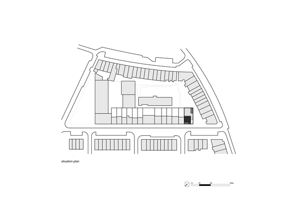 Deze vijf ingrediënten zijn in het ontwerp samengevoegd tot een speelse informele compositie, gerangschikt rondom het centrale trappenhuis. Grote, af en toe overhoekse raampartijen laten licht vanuit allerlei invalshoeken naar binnen schijnen en waardoor een lichte en rijk gevarieerde interieur atmosfeer tot stand komt.