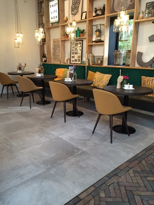 Een ander project is in samenwerking met Jansen-Noy in Sevenum (Noord-Limburg) waar op de vloer tegels van Porcelanosa liggen. Op de vloer ligt Dover Acero van 60 x 60 cm.