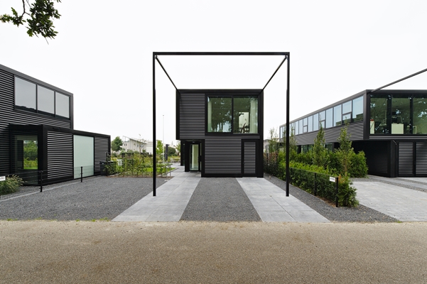 De 3 stalen woningen vormen een bijzonder ensemble. De stalen bouwwerken met een relatief hoge bebouwingsdichtheid zijn consistent en integraal ontworpen voor de commerciële particuliere verkoop. Veel daglichttoetreding, zicht van binnen naar buiten, privacy en klimaatbeheersing zijn erg van belang bij het bepalen van het concept.