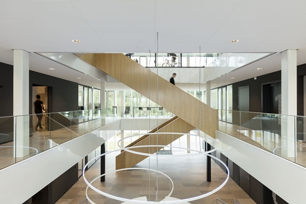 In het door Fokkema en Partners ontworpen interieur is er alle aandacht voor samenwerking en ontmoeting, voor een gezonde werkomgeving en het zicht op de wereld rondom het gebouw. De open werkvloeren kunnen heel flexibel en zonder verlies van materialen en energie worden ingedeeld naar de ontwikkelende behoefte.