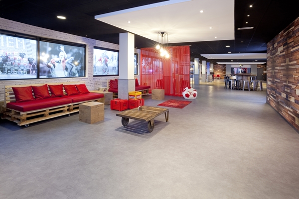 FC Emmen is een nederlandse voetbalclub in Emmen, Drenthe, en speelt momenteel in de Eerste Divisie. Het interieur is voorzien van digitaal geprint vinyl. Met Forbo Identity, digitaal geprint vinyl, is vrijwel elk vloerontwerp mogelijk. Zoals een voetbalveld in de lounge bijvoorbeeld.