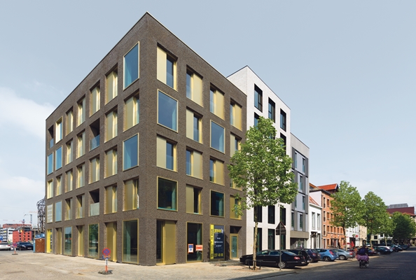 Binnen het beeldkwaliteitsplan "eilandje" is de typische pakhuisarchitectuur in al haar eenvoud en sterkte een belangrijke parameter als veruitwendiging van nieuwbouwprojecten rondom het MAS. Bijkomend herkennen we op deze historische havensite de typische verticale geleding en diversiteit van gevels. In de gevel ontworpen in architectonische beton was EQUITONE [tectiva] een goede match als aanvulling/variant op de beton.