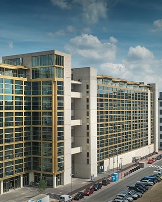Christopher Ho, architectenbureau diederendirrix: “Bij de start van het project hebben we het pand onder de loep genomen en beoordeeld hoe de transformatie zou gaan verlopen. Het casco bleek nog in hele goed staat, maar we besloten al snel dat we de betonnen borstwering en de pui wilden verwijderen. We wilden de lofts zoveel mogelijk daglicht geven, dus hebben de gevel geheel geopend. De lofts hebben nu glazen puien van 3,30 meter breed en 4 meter hoog. In de plint bevinden zich een supermarkt en verschillende horeca. Op het dak, waar voorheen de technische ruimten zaten, hebben we de kans gehad om nog 49 penthouses te realiseren.”