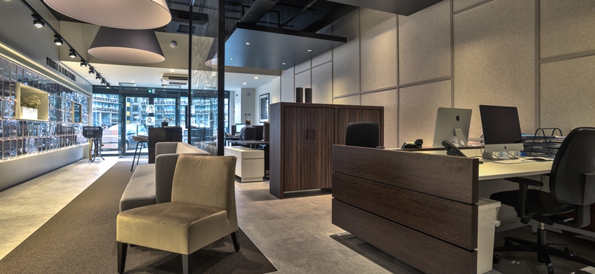 Sinke Op de Zeeuwse huizenmarkt is Sinke Komejan makelaars een begrip. Vakmanschap, expertise, klantvriendelijkheid en snelheid van handelen zijn kernwaarden van Sinke. Het ontwerp voor het makelaarskantoor in Goes werd vormgegeven door de interieur architecten van WSB. In het design is nadruk gelegd op pure materialen zoals leer op de balie, verfijnde detailleringen in het meubelair van staal en freeswerk. Het coromandel hout in combinatie met de contrastrijke maar rustige kleuren maken het bezoeken van dit makelaarskantoor plezierig.