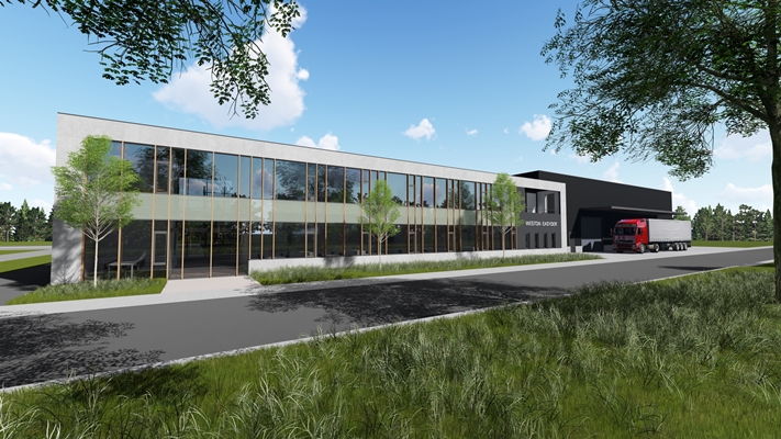 De bouw is al volop aan de gang. Aan de Centurionbaan in Soesterberg komt het nieuwe pand van Weston en Easydek te zitten. Een grote hal dat vol komt met stellingen en een modern kantoor aan de voorzijde. Een mooi pand om te mogen bouwen! Er is voor de gevels gebruikt gemaakt van het castellum systeem. De kozijnen kunnen hierbij zeer simpel in de gevels worden ingeklikt.