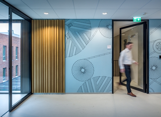 Bij binnenkomst in de centrale hal zie je als bezoeker gelijk een immense met de hand getekende illustratie van 1.500 m2. De voorstelling bestaat uit het menselijk lichaam, opgebouwd uit componenten van de industriële geschiedenis van Zaandam, bekend bij alle inwoners van de regio.