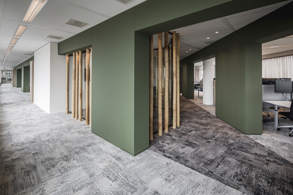 Desko verzorgde voor Klap makelaars en assurantiën de volledige inrichting van het kantoor en creeerde een sfeervolle plek voor de medewerkers voor een rust moment. Desko heeft gekozen om zo veel mogelijk meubilair te hergebruiken, natuurlijke basis elementen en kleuren terug te laten keren bij de inrichting. Door de bamboe pilaren te combineren met het speelse patroon van de vloerbekleding zorgen deze voor een verassend effect. Mede door het creatieve hergebruik van het oude meubilair in combinatie van nieuw meubilair, kunnen we zeggen dat circulair inrichten succesvol en verassend is.