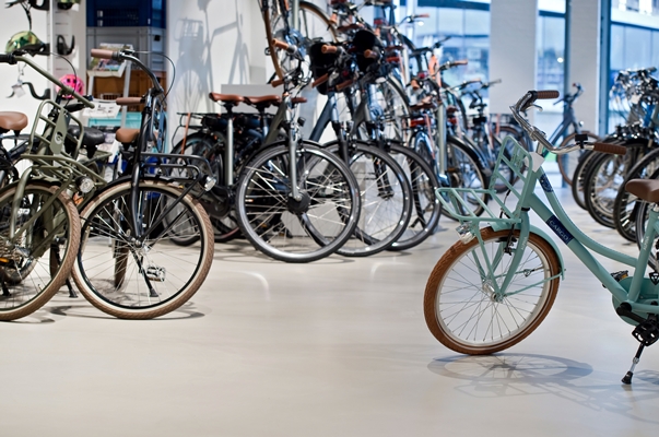 Dat geldt dus ook voor Tino Vredenburg van TGL uit Wormer, die de FloorColouring-vloer in opdracht van Bouwbedrijf Jan Vet uit Wormerveer installeerde. 390 FloorColouring is een pigmentproduct waarmee je in combinatie met de 990 Europlan Direct of 920 Europlan Alphy een egalisatie en vloerafwerking in één aanbrengt. Evert: ‘Tino luisterde goed naar onze wensen en kwam met dit nieuwe Eurocol-product op de proppen. Hij adviseerde ons ook uitstekend bij het bepalen van de kleur. Op zijn aanraden kozen we voor het lichte basispigment White en het resultaat mag er zijn. Op deze lichte FloorColouring-vloer komen onze fietsen mooi tot hun recht, want die zijn al druk genoeg met hun felle kleuren en grillige vormen.’