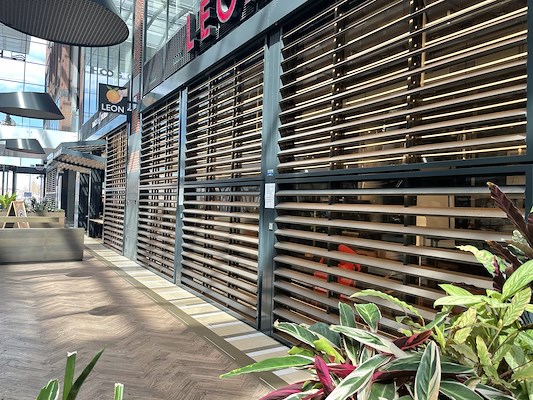 In Utrecht heeft Artino voor winkelcentrum Hoog Catharijne lamellen vouwluiken mogen plaatsen. De stijlvolle combinatie van antraciet en hout geven de winkelpui een strakke look passend bij de moderne uitstraling van het winkelcentrum.