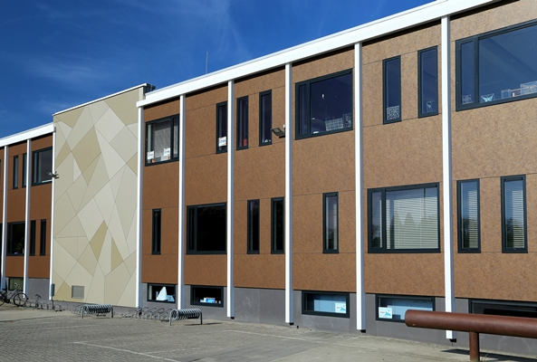 Voor de gevelbekleding is een zorgvuldige selectie gemaakt uit de Trespa® Meteon® collectie. Er is gekozen voor een samenspel tussen de