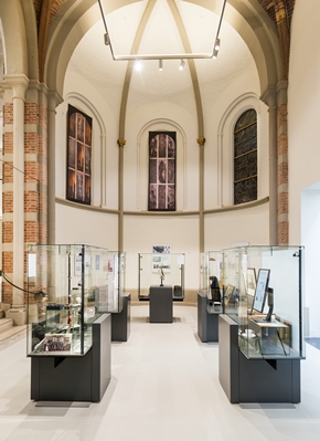 De vijf functies zijn zodanig vermengd dat ze samensmelten. Door de kasten, tafels en vitrines in de kerk op rails te zetten kan het volledige middenschip in een oogwenk leeggemaakt worden voor grote evenementen en gala’s.