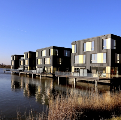 Nederland heeft een diepgewortelde traditie in het bouwen op en rond het water, en het nieuwbouwproject Zeeburgerbaai in Amsterdam is daar een modern boegbeeld van. Op Steigereiland, het hart van IJburg, zijn achtentwintig unieke waterwoningen verrezen die de grens tussen land en water doen vervagen. Het ontwerp van Attika Architekten omvat vier vrijstaande villa’s en vierentwintig tweekappers, gesitueerd op de William Barlowsteiger en de Edmond Halleysteiger. In tegenstelling tot traditionele woonboten staan deze woningen op solide platforms op palen, waardoor een stabiel en ruimtelijk woonklimaat ontstaat dat volledig in het teken staat van de maritieme beleving.