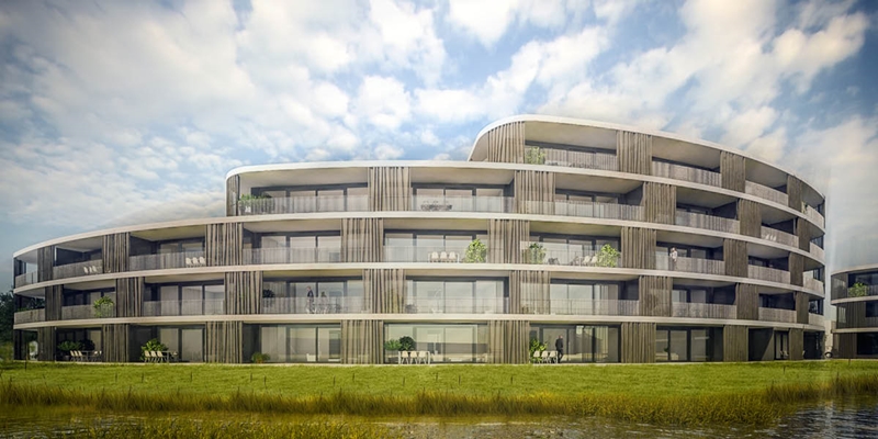 en worden voorzien van hoogwaardige keukens en sanitair. Het gekromde appartementencomplex is ontwikkeld door JMW architecten uit Tilburg en wordt gerealiseerd door Maas-Jacobs Bouwbedrijf BV. Laatstgenoemde koos in verband met een veilige daktoegang voor Gorter uit Schagen. Dit internationaal opererende bedrijf legt zich al sinds de jaren negentig uit de vorige eeuw toe op veilige toegang tot daken en door vloeren, wanden en plafonds.